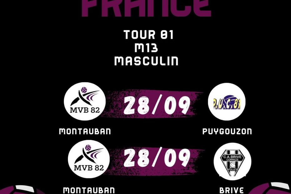 Le Montauban Volley-Ball a le plaisir d’accueillir le 1er tour de la Coupe de France M13 Masculins ce dimanche 28 septembre à partir de 11h, au gymnase de Montauban.